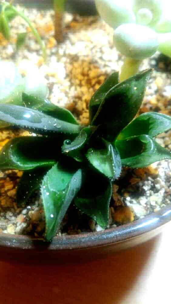 このハオ、あるHCで売られてました。他の多肉と寄せ植えでした。見ての通り干からびています。右の葉は閉じています。