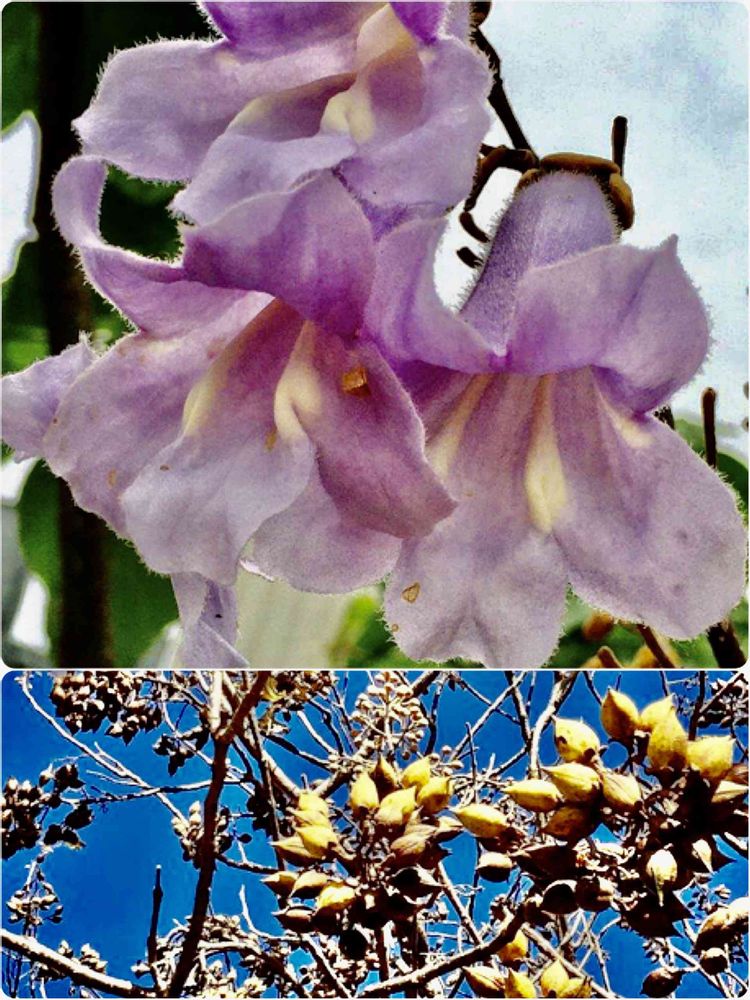 キリのお花と実、高くて📱では撮すの諦めてたら偶然、ラッキーな枝を見つけて👍💦