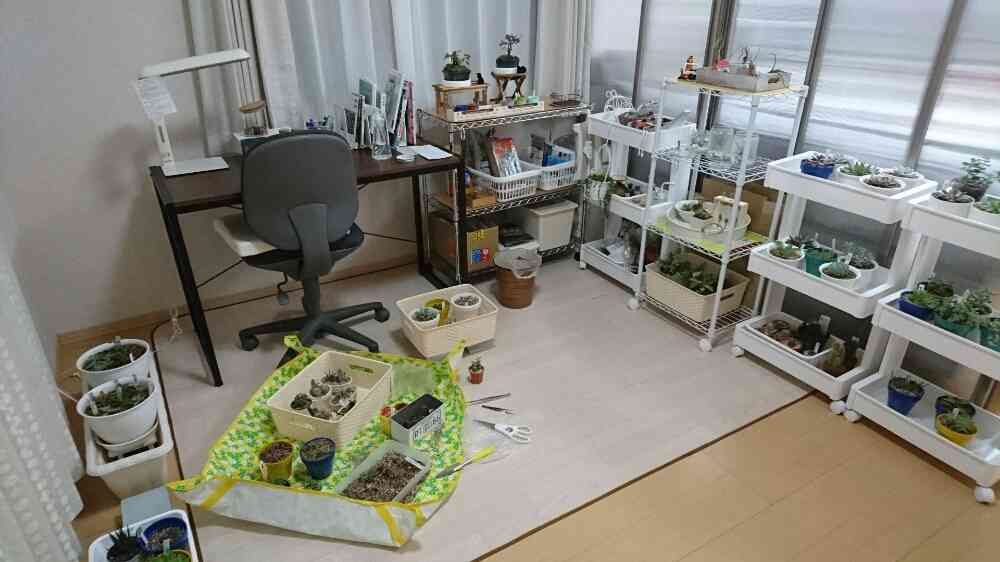 仕事で県外にいる長男の部屋は、私の作業場兼、多肉ちゃん、サボ子、盆ちゃんのお部屋になってます。😜