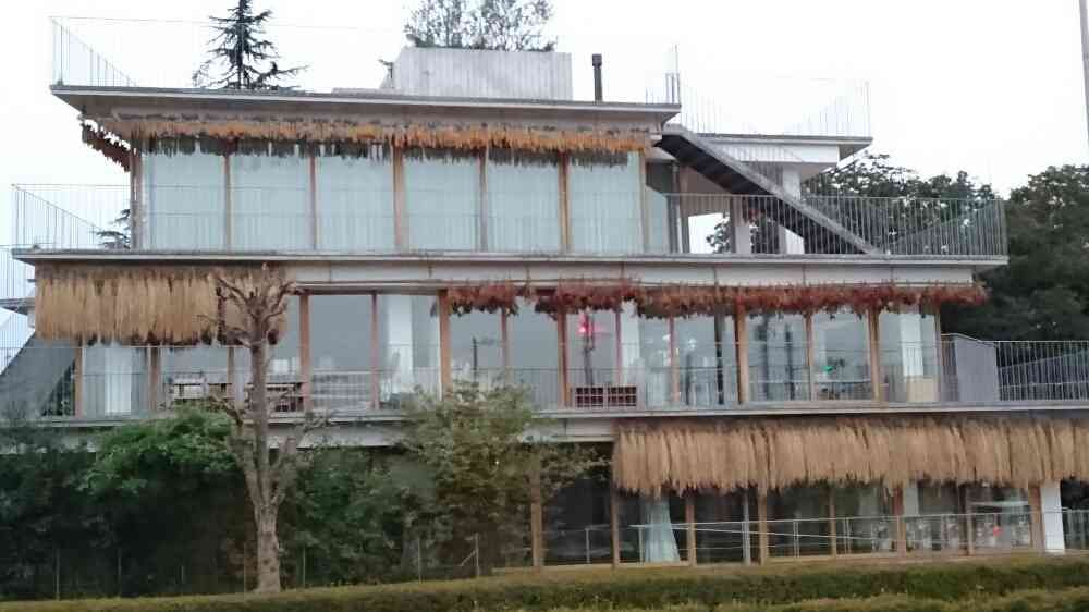 これ☝は事務所なのかなぁ?隣に全面ガラス張りしたドーナッツ🍩型の園舎があるよ。