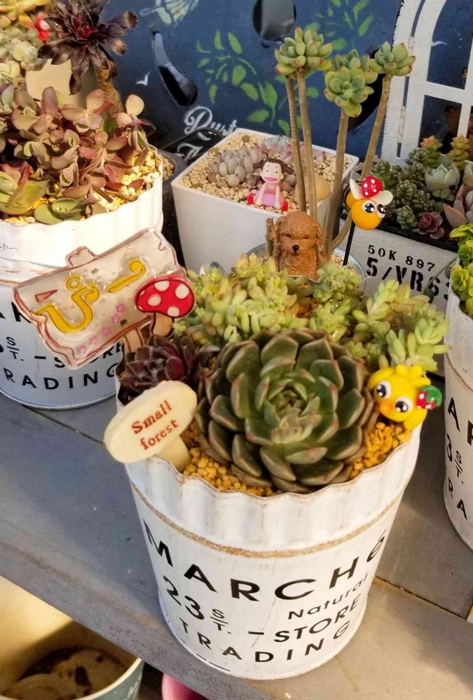 可愛いリメ缶に寄植えの多肉ちゃん達が沢山いますね〜😍