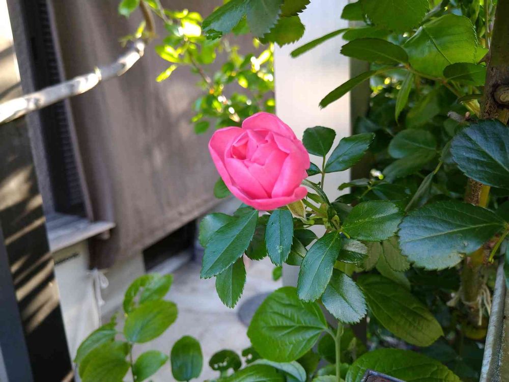 バラのアンジェラがひとつ咲きました。濃いピンクが可愛い❣