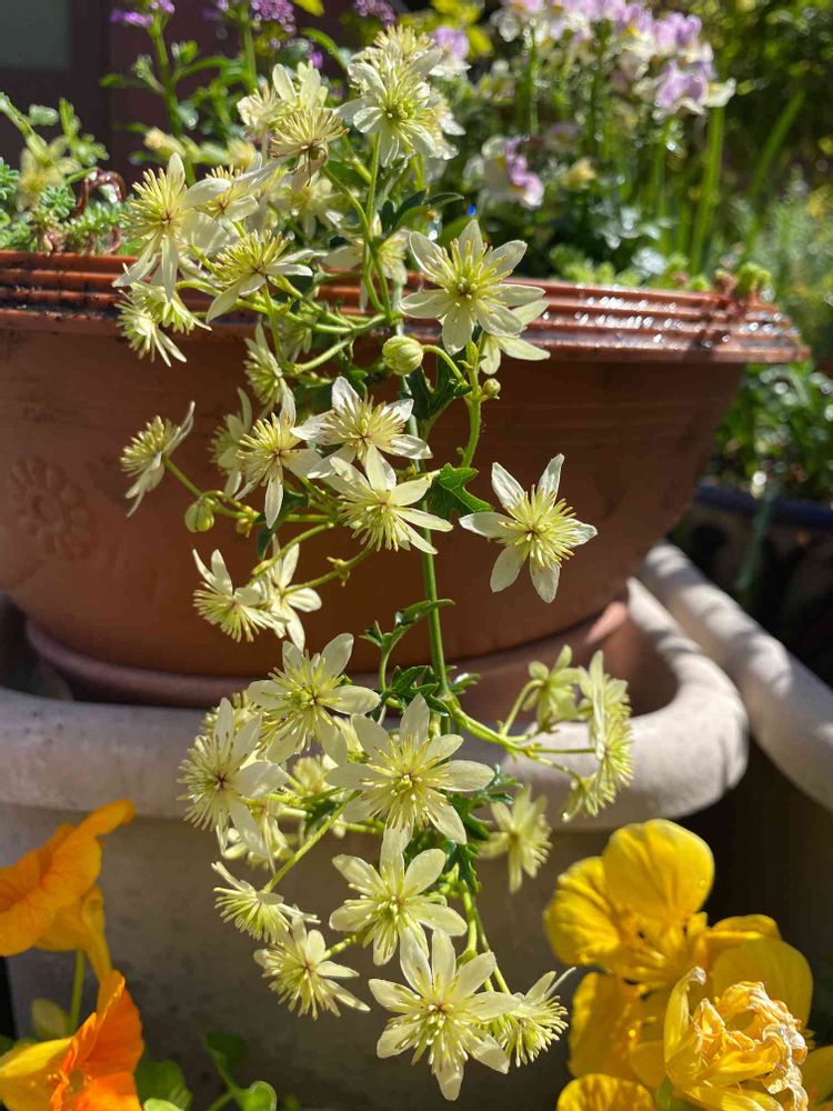 クレマチスピクシーです。グリーンの控えめな花色もお気に入りです。