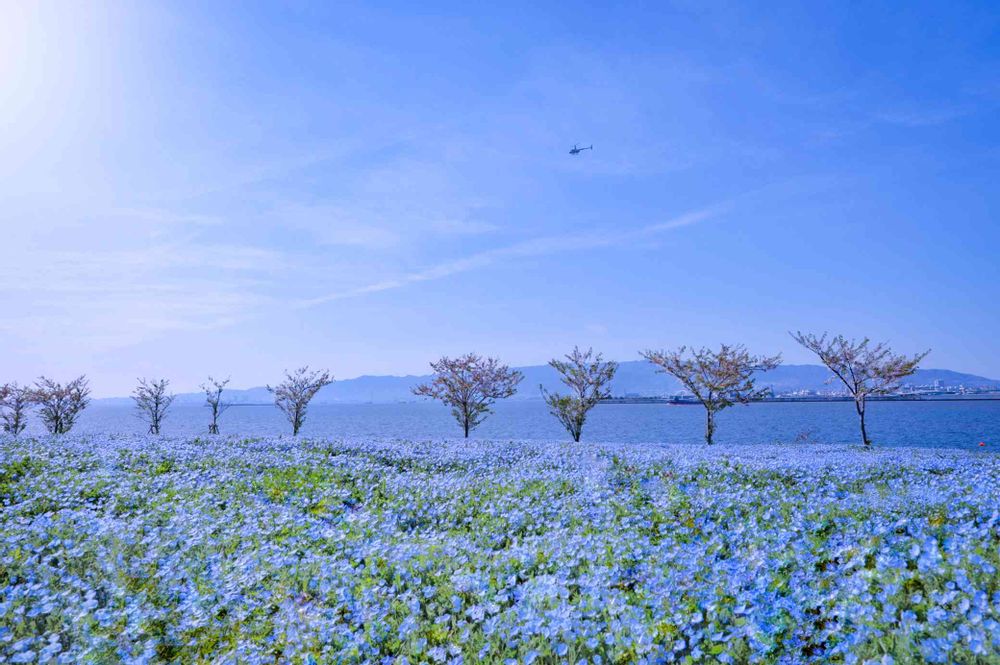 大阪市にある「大阪まいしまシーサイドパークのネモフィラ祭り」…💙🌸✨