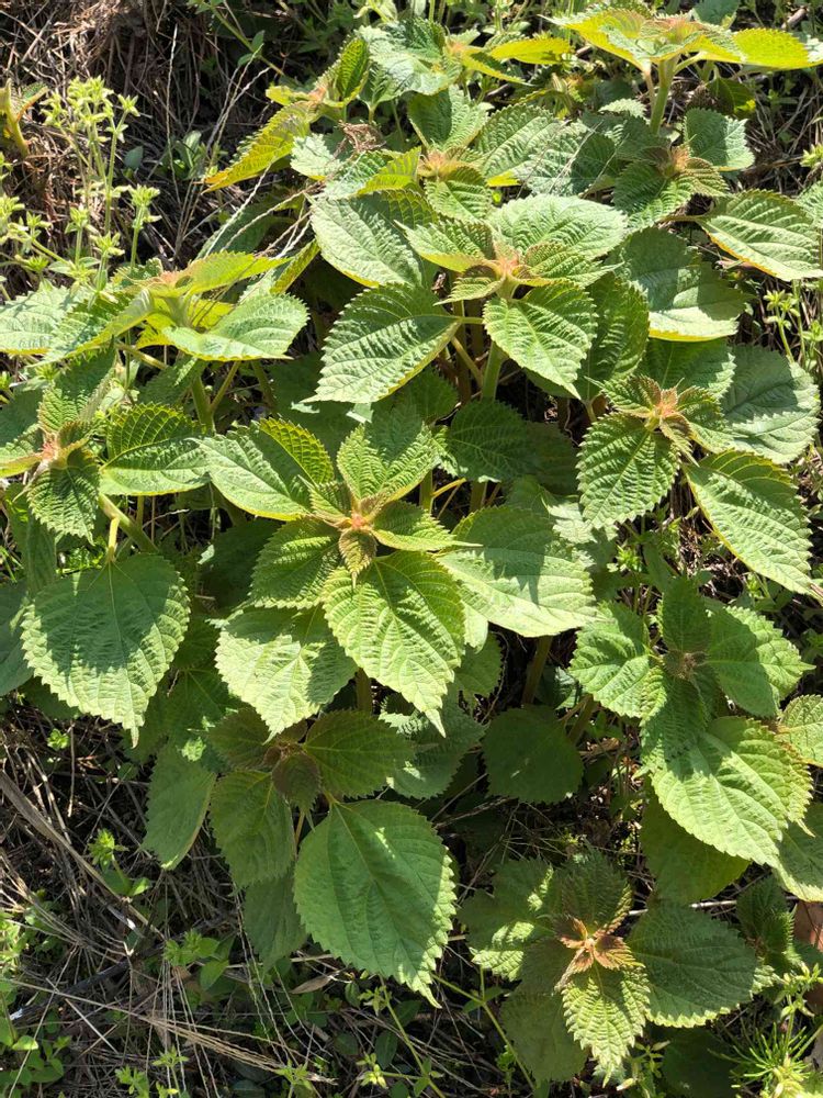 大きくなる草ですけど、目立つ花がつくわけでなし(葉腋から地味なのがスダレみたいにぶら下がる)、葉にちりめん皺がよってるのが特徴ですね😊