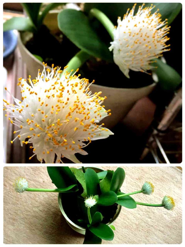 おはようございます☀ わが家も咲きましたよ〜(*´∀`)♪ マユハケオモト別名 ハエマンサス