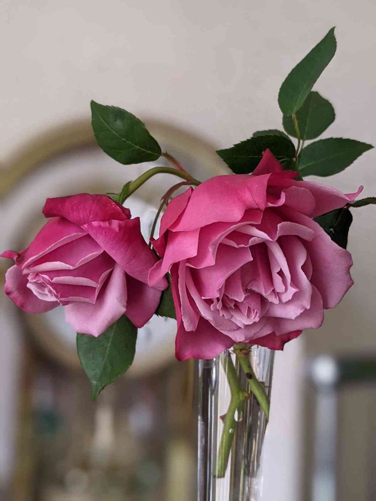 最初の花を切り花にしましたが、つるバラなので、どうしても下を向いちゃいます🥀