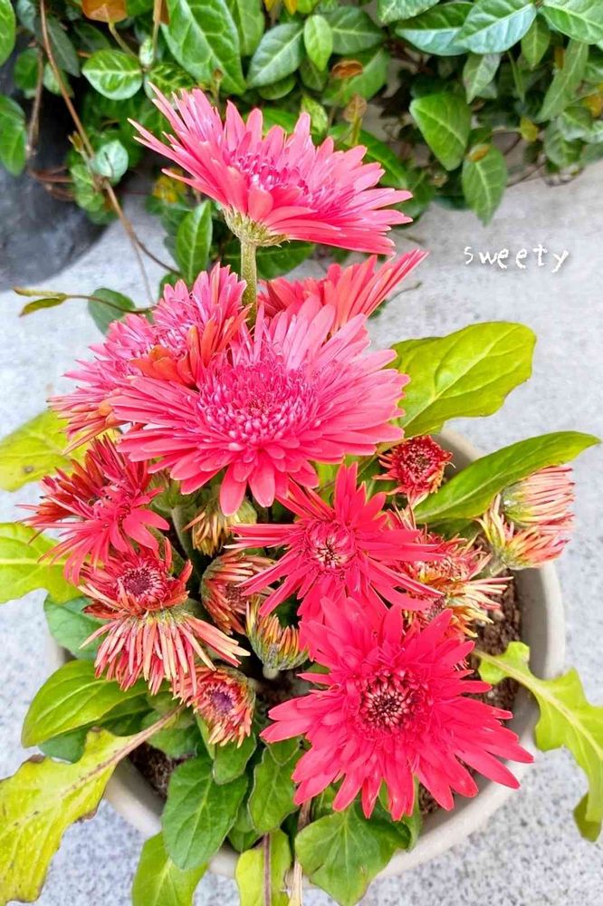 年始に1年半ぶり1輪だけ咲いたガーベラさんが、みるみると変化😳