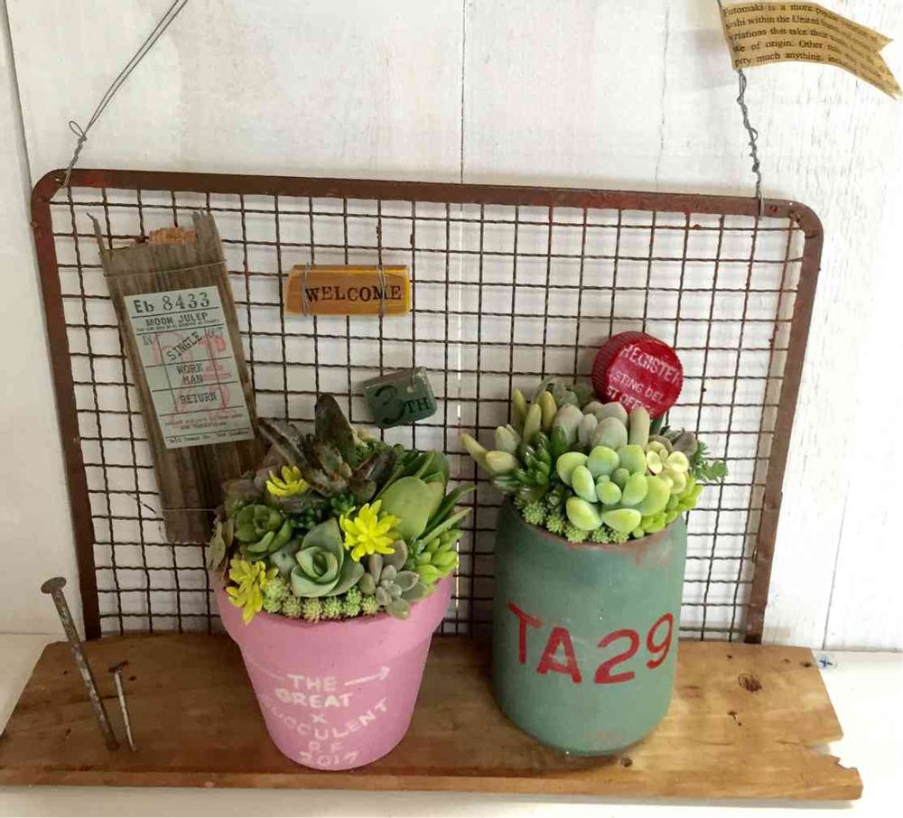 グリーンのリメ缶の寄せ植えは、私が作りました😊🙌💝