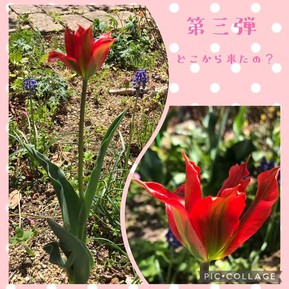 植えて無いチューリップシリーズ第三弾❣️今回はちょっと花びらがツンツンして綺麗な赤色のお花です💕