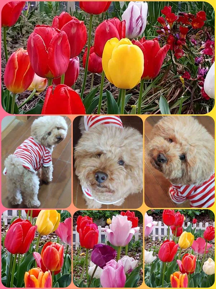 チューリップ🌷に囲まれてちゃちゃ君可愛いですね〜😍