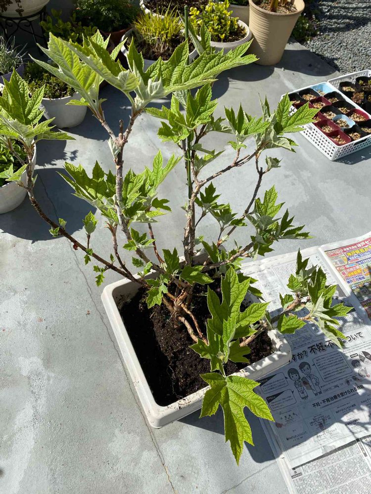 この柏葉アジサイはお迎えして4年ですが、根切り虫の被害、2度目です🥲
