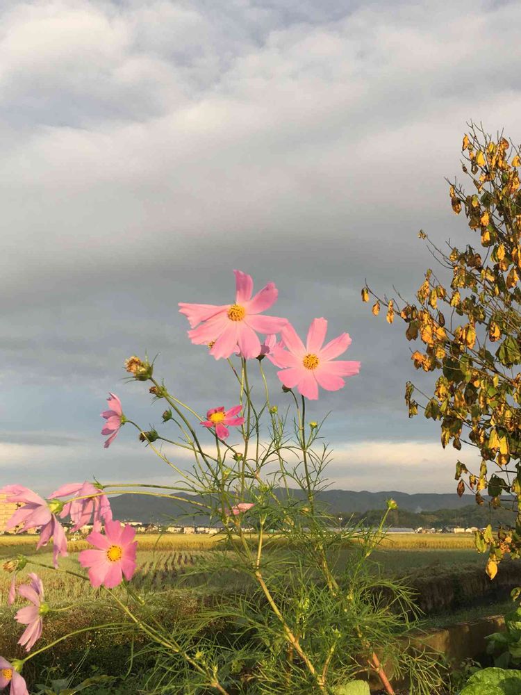 おはようございます😃久しぶりの晴れ間、早朝散歩に行ってきました。コスモスちゃんも朝陽に向かって喜んでいます。今日も1日元気で頑張りましょう😊