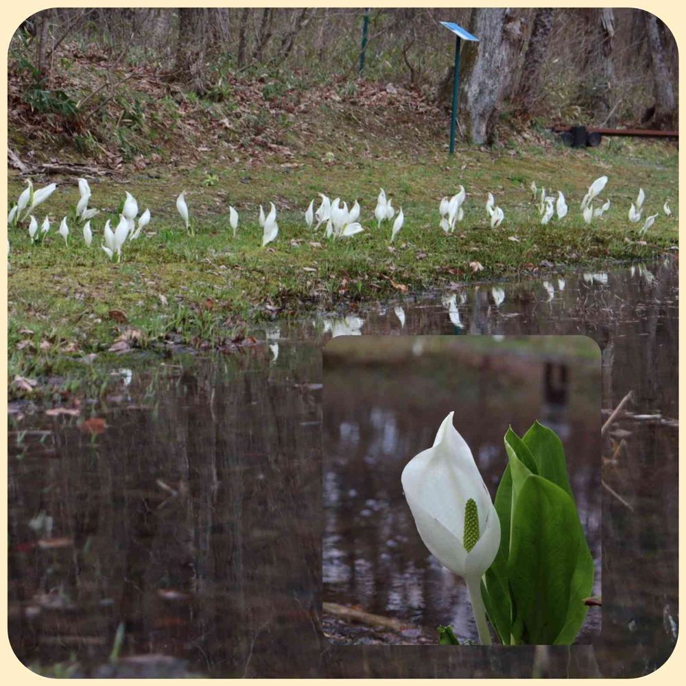 ほんとうは尾瀬の水芭蕉が有名ですが、けっこうあちこちで、咲いてます♡
