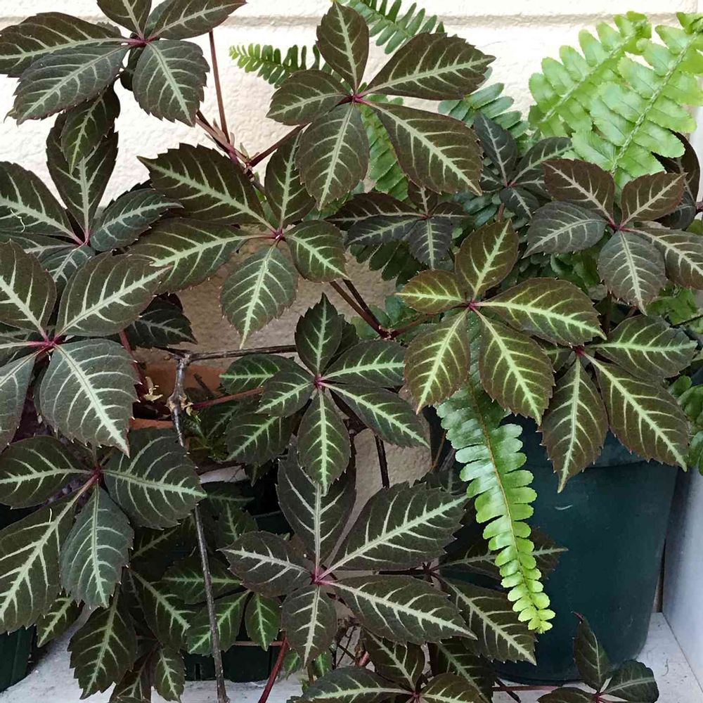 冬取り込む前まで隣に置いといたタマシダがいつの間にかヘンリーヅダの鉢に同居している