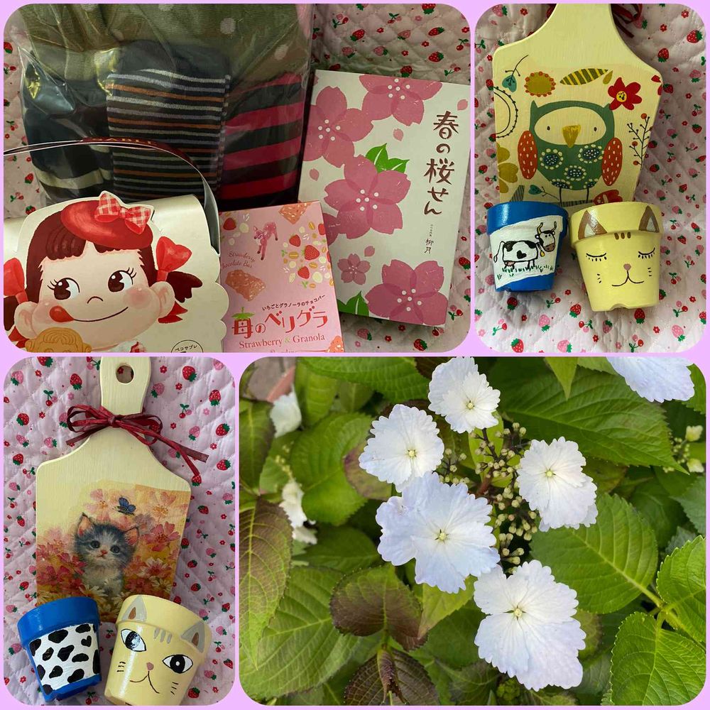 ↖️大量の靴下🧦とペコちゃんサブレ、春の桜せん、母のベリグラ…美味しそうなお菓子達💕