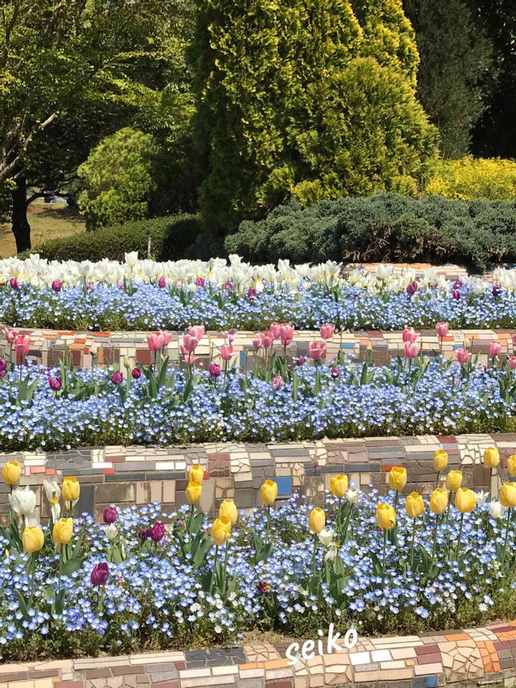 ネモフィラとチューリップとても
