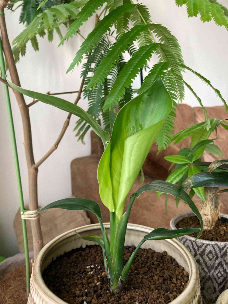 同じような状態なんですね〜😅急にこんな大きめの葉が出てきたので謎です💦大きめサイズに鉢替えしたからかなぁとも思ったんですが…植物の成長ってそれぞれ違うので飽きないですね!お互い、今後のストレリチアを見守っていきましょう〜✨