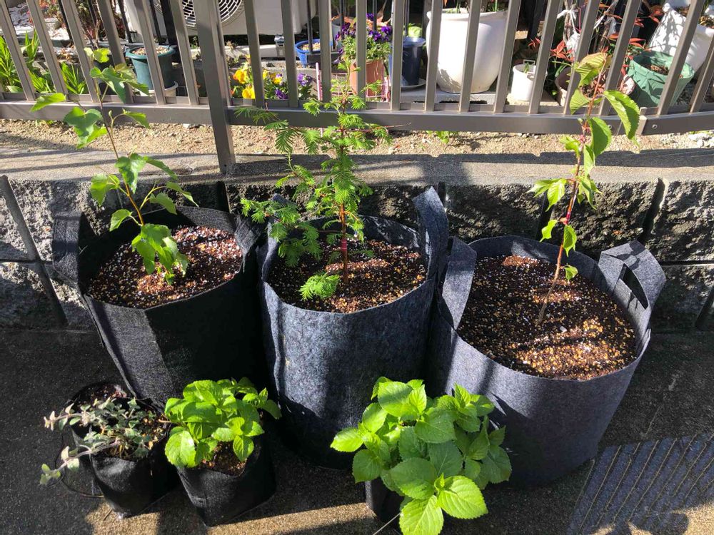 メタセコイヤ、白樺、オオヤマザクラの苗が届き植え替えました。