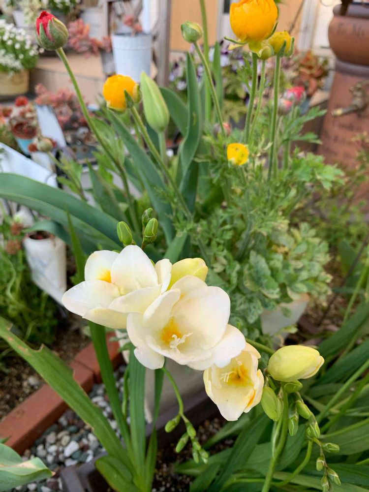 おはようございます😃早々と失礼します🙏😅フリージア凄くかわいいです😍寒さが苦手なようで私はこの冬枯らしました😂にこさんのお庭が羨ましいです❣️