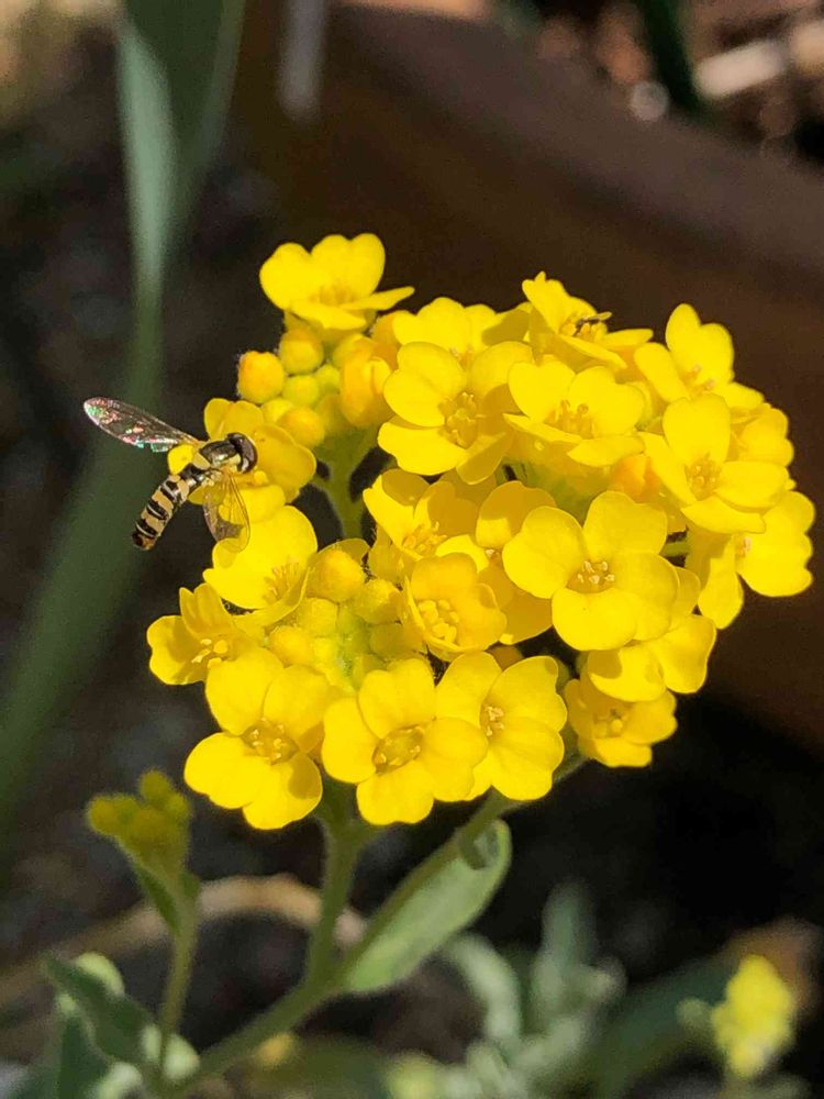 たまたま黄花にフォーカスを当てていると蜂がやってきました〜!