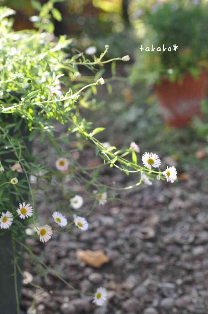 枯らしてしまったバラの鉢を庭の隅っこに放置していたら、こぼれ種でいつの間にか咲き乱れていたエリゲロン