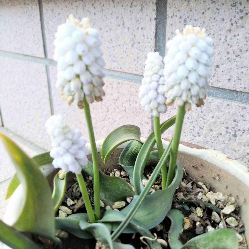白のムスカリ可愛いですね。私は初めてピンクのムスカリを植えてみました。今度白も購入したいです。