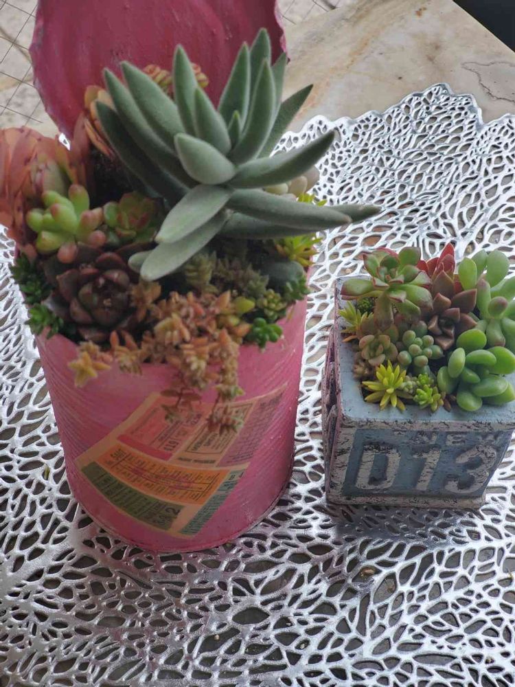 カスカスの寄せ植えを仕立て直ししました。リメ缶派手過ぎましたね(笑)