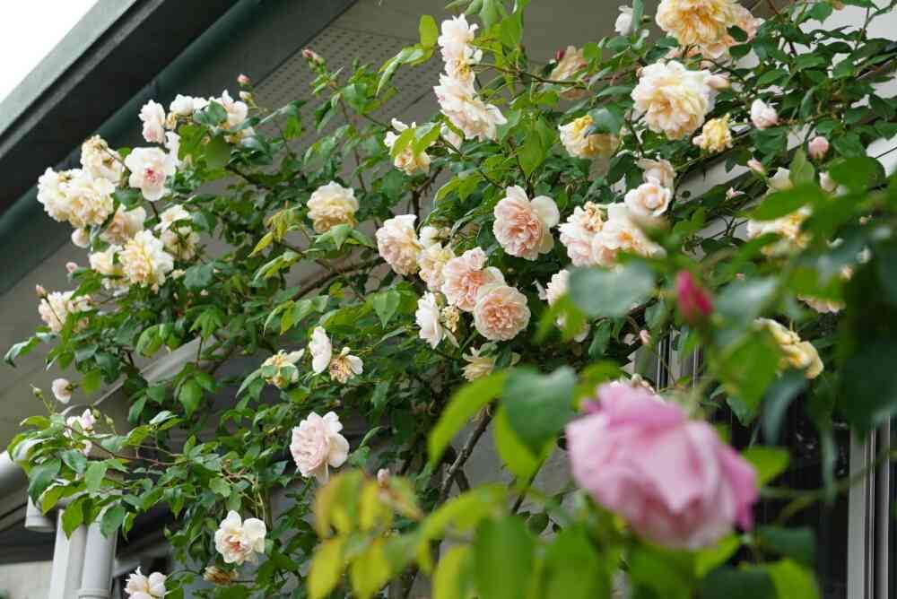 クリームのようなアプリコットのような、やさしい色の薔薇🌹ですね。