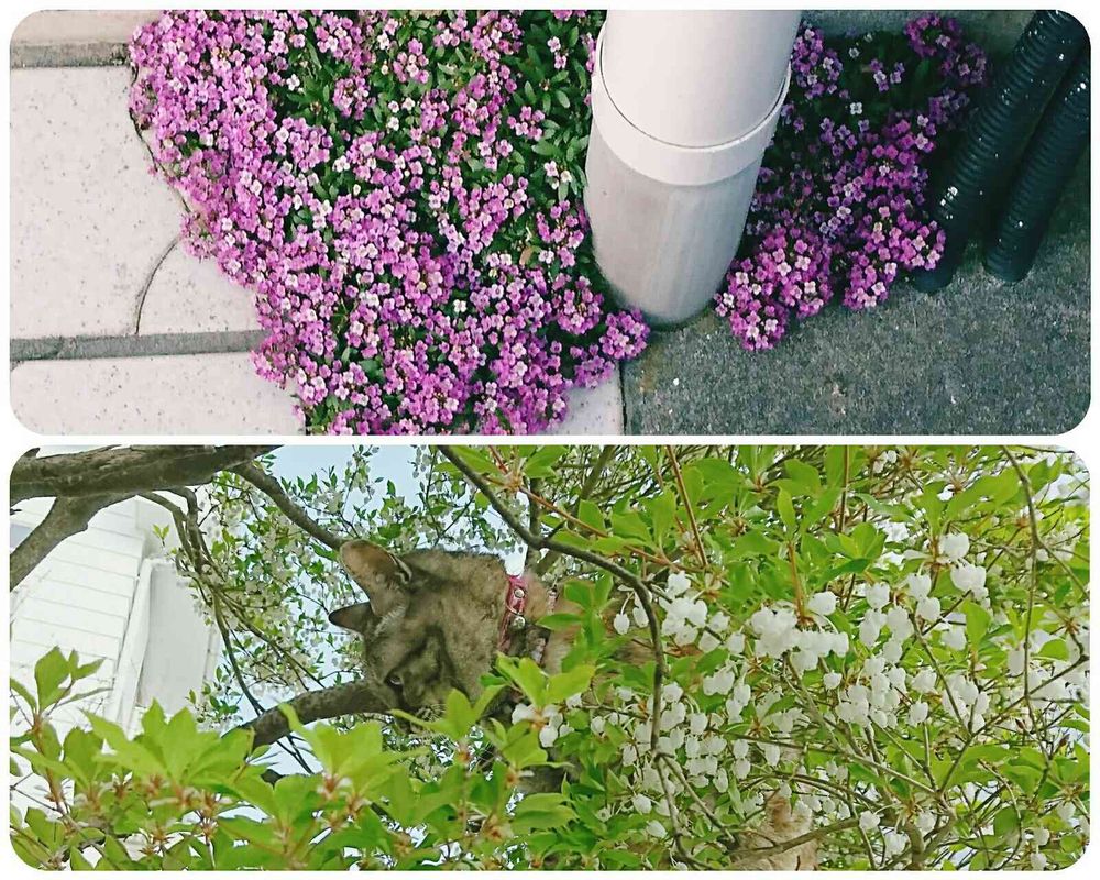 サクラ🐱が虫を気にして登ろうとするので、注意してはいるのですが、今日は自由にさせてみました😊