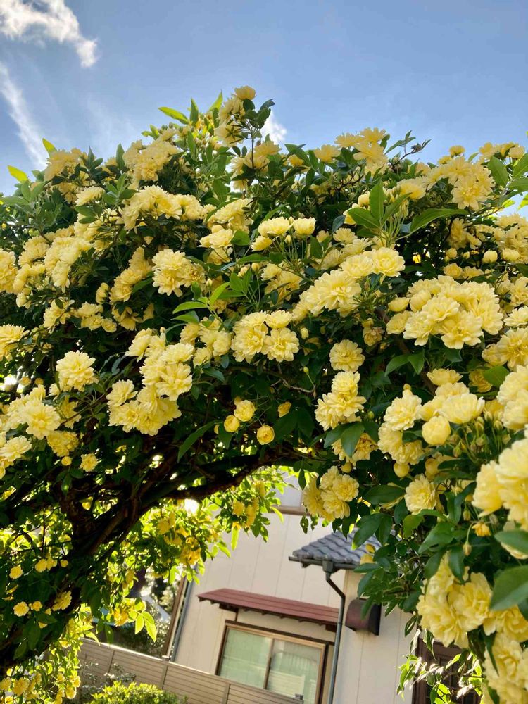 わが家のアーチの黄モッコウバラが、今年も沢山咲きました💛
