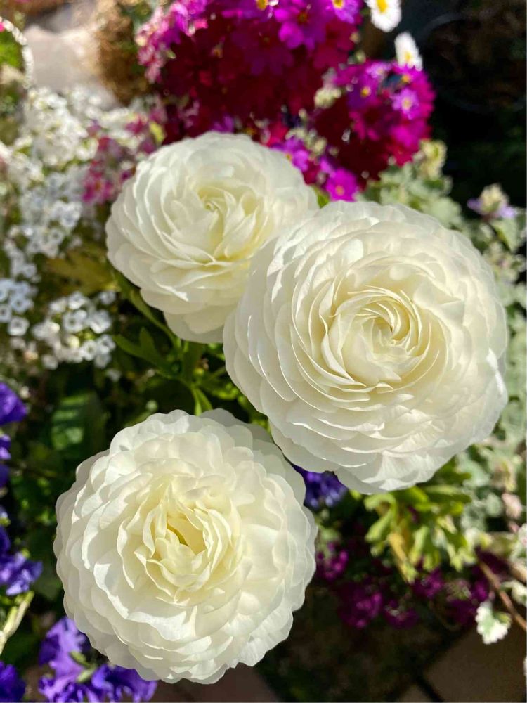 寄せ植えのラナンキュラスが綺麗に咲いていたので……上から📷✨😊🤍