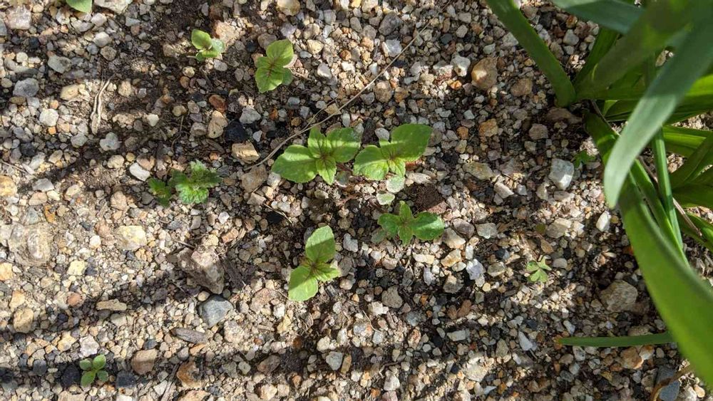 去年シソの種をバラまいたら今年芽が出てきました。でもまだ小さいです
