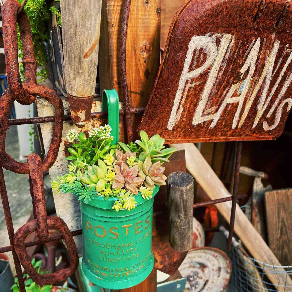 リサイクルショップのポイントで貰ったブリキプランターにさっそく寄せ植えしました。家にあったストック苗だけで寄せたけどプランターと合ってる♪♪