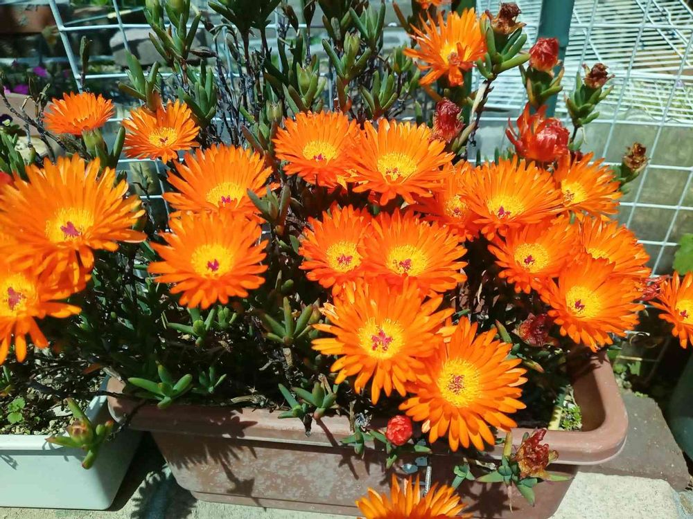 出勤途中で、ご近所のプランターに植えられている、オレンジのマツバギクを、撮りました。お天気悪いと、お花が開かないので、今日は見れません。