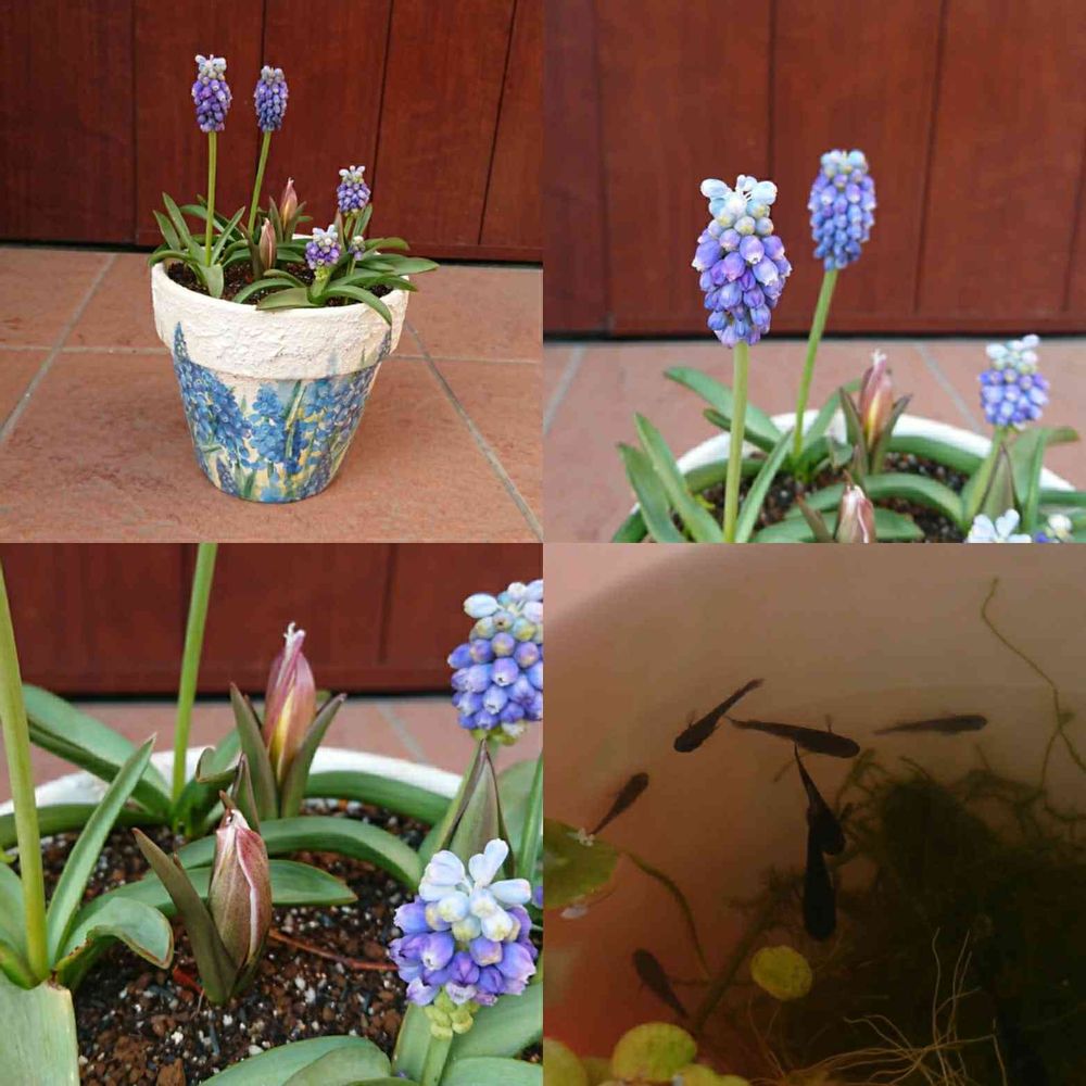 去年、オアシス☆さんから頂いた、ムスカリとミニチューリップの球根を、ムスカリ柄のリメ鉢に植えていました🎵