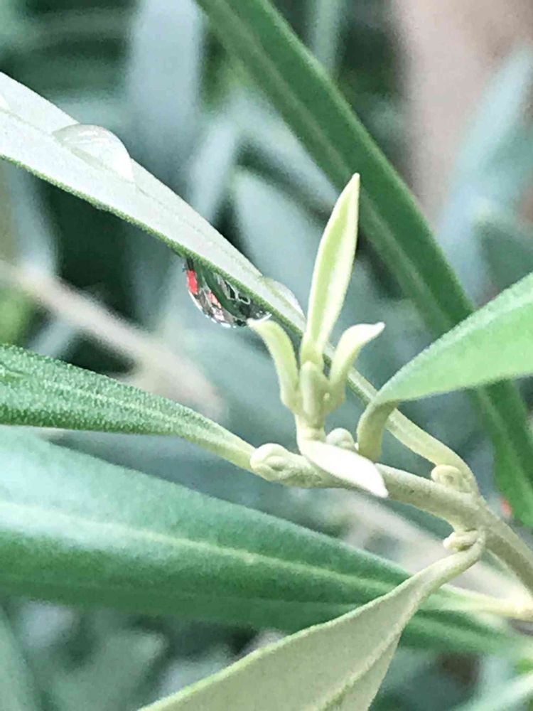 昨日、オリーブに新芽が出てるなぁ〜って見てたら雫がぷっくりのってたので思わず📷✨パシャ