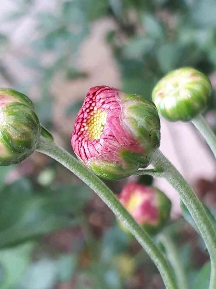菊の蕾が、ピンクも黄色もかわいいですねえ😊