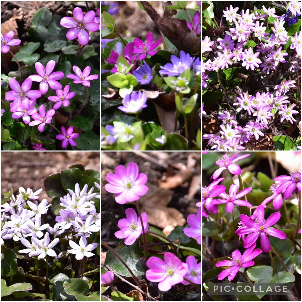 いつも見てる小さなミスミソウ、花も可愛く一輪〜数輪程度なんだけど、それとは別物みたいで元気に花いっぱい😆