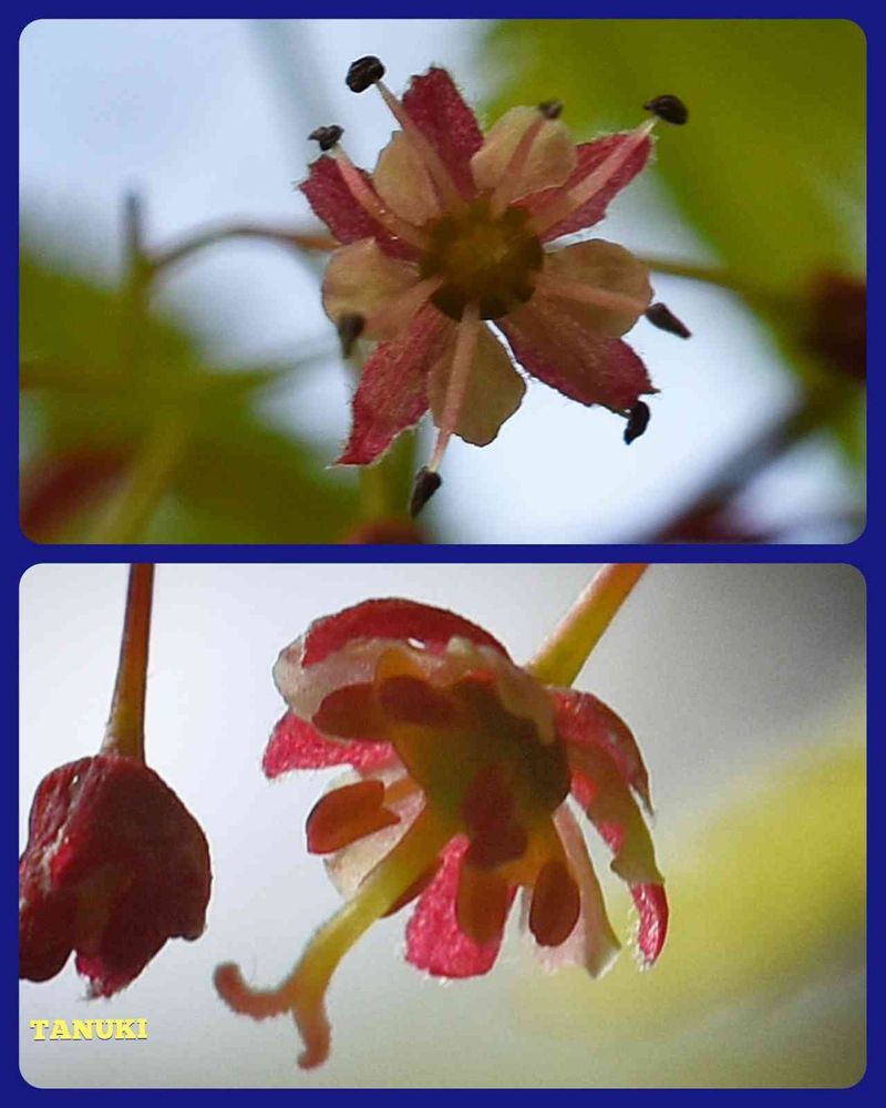 モミジは雌雄同株です。同じ木に雄花と雌花があるはずです。しかし、私の手元に詳しい資料が有りません。感です。🙏