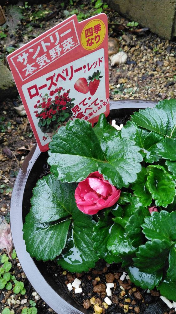 園芸店でイチゴと同じ葉っぱなのに赤い花の札を見て購入しました。