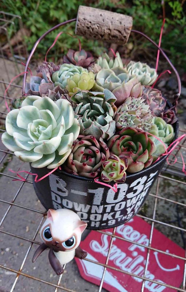 随分前に作りかけてそのままのリメ缶に入れて記念撮影後、おひとり様へ植え付けました💓