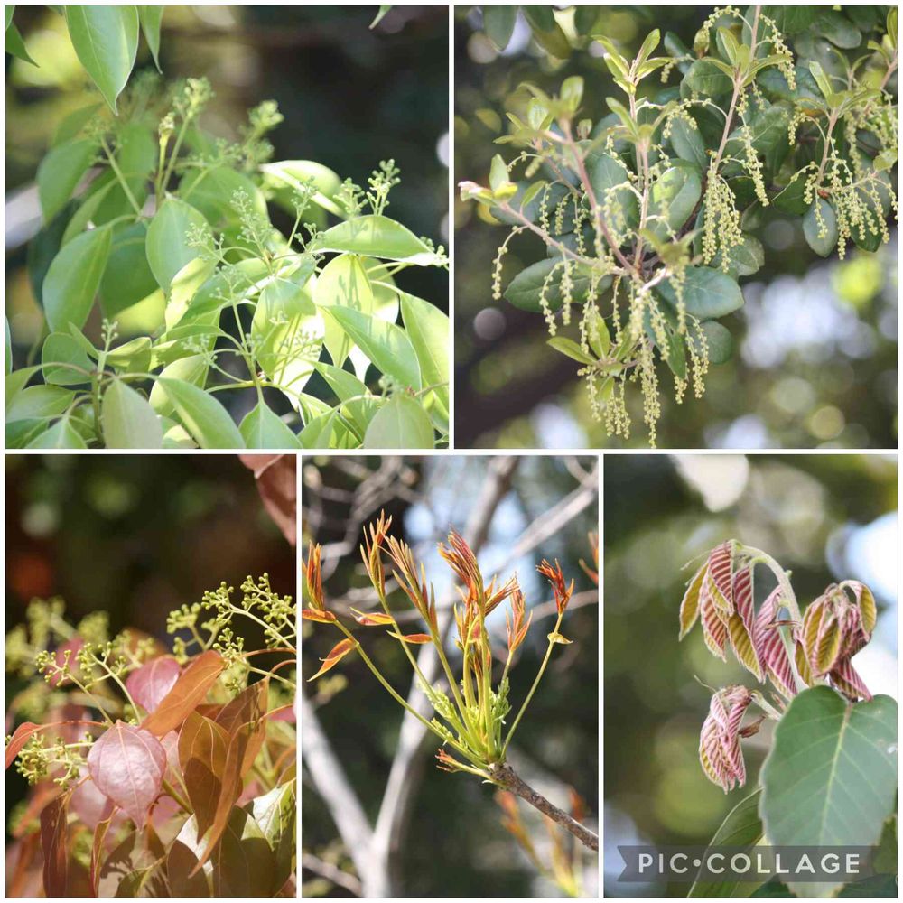 公園に続く道を歩いていると、いろんな木の花や新芽に出会います♪