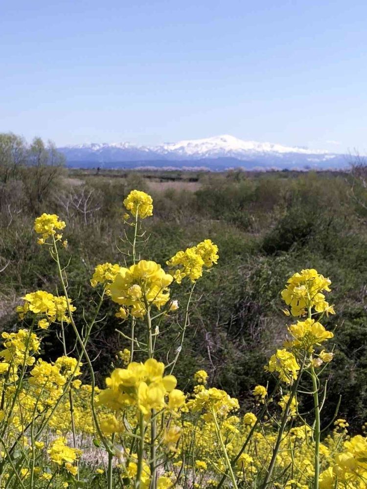 鳥海山と菜の花が凄くマッチしてベストな光景ですね。