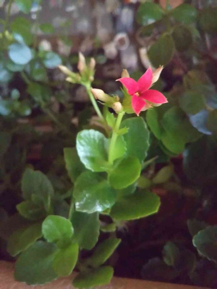 カランコエ👀一輪咲いてます。豪雪の影響でしょうか🤔和室の茶だんすの上に置いて待ってました。昨年は三月下旬咲き、今年は半月遅れました。が👴は花💠任せ、満開が楽しみです、集落の桜も満開になりました。今日は午前中☀️家庭菜園の雑草取り、今は雨☔️降り始めました。これ五年目、数種類まとめてプラ鉢に入れてます。