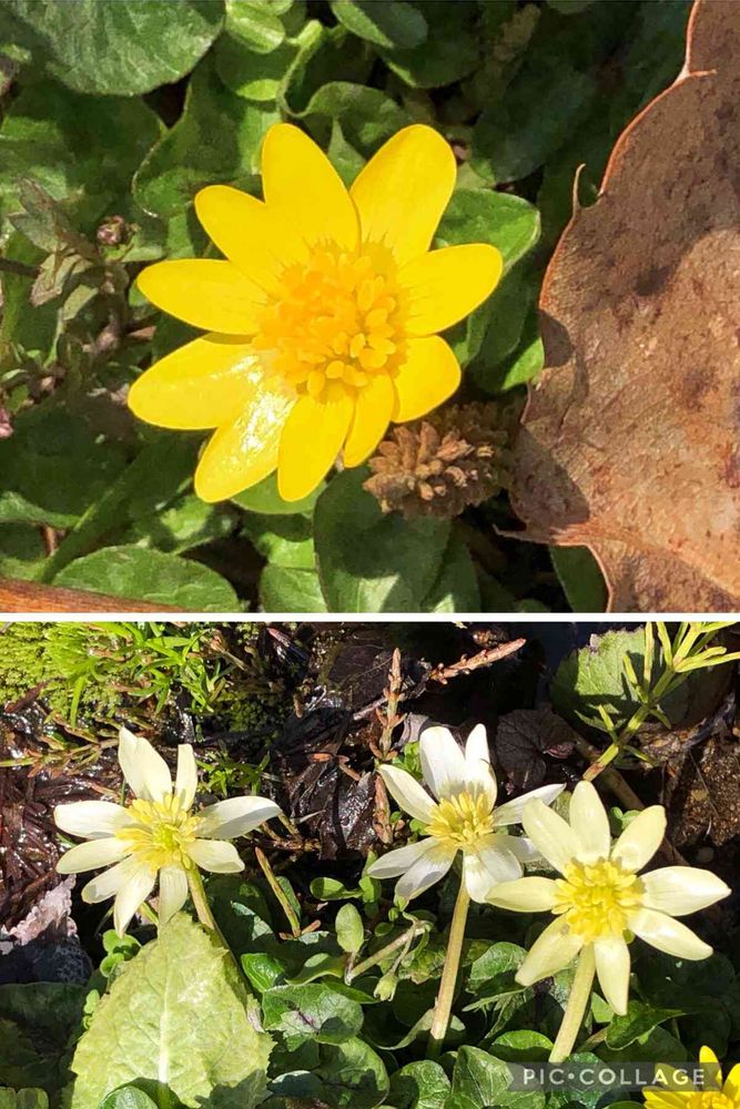 下は、白花ヒメリュウキンカ、白というより淡い黄色っぽい花ですね。