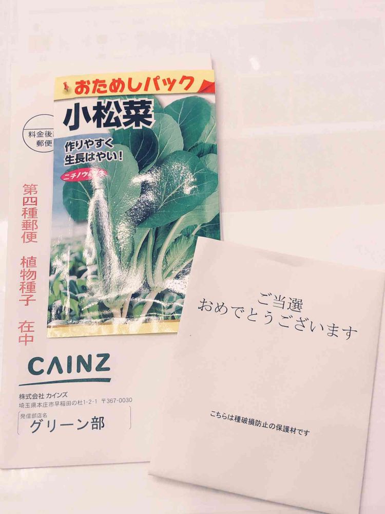 応募を忘れていたので😅小松菜🥬の種が届いて嬉しいです💕