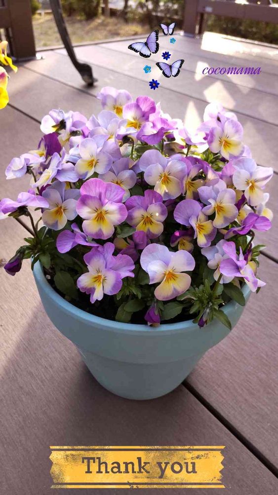 ビオラちゃんデッキの上に飾ってるから毎日眺めて癒されてるよ✨