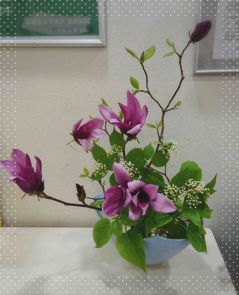 木蓮の色💜インパクトありますね~😚☝️ガマズミの小さなお花が引き立ててくれてて派手さを感じない😌