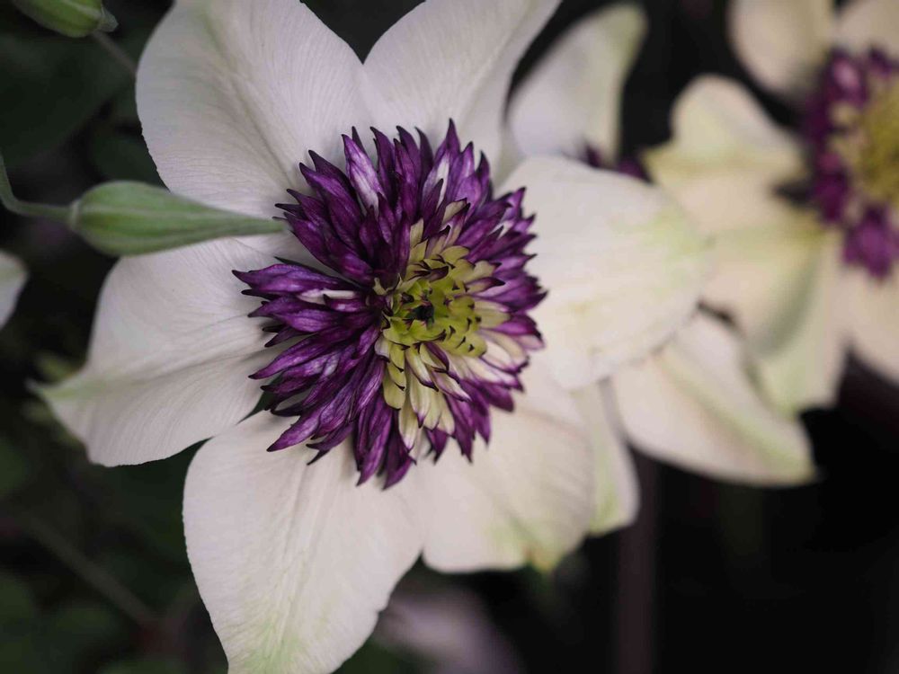 クレマチスシーボルディー、今年お迎えのクレマチス❣️薄いグリーン白に近いに紫、中心にグリーン色が入って綺麗です🥰
